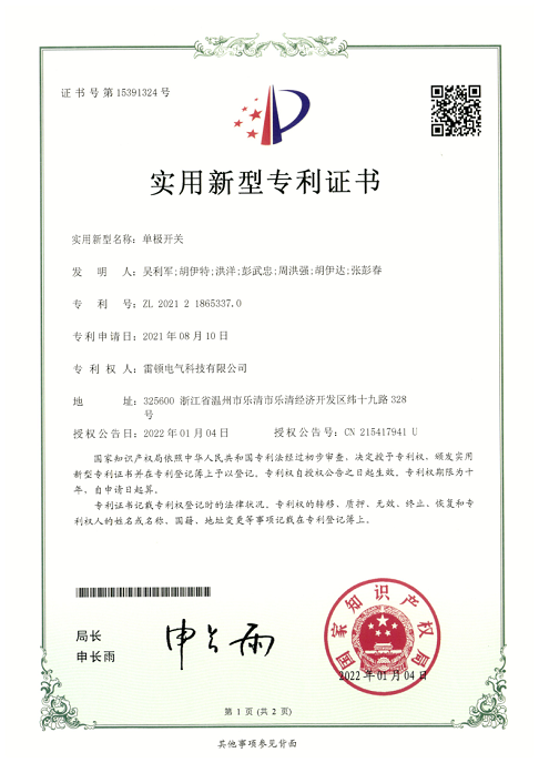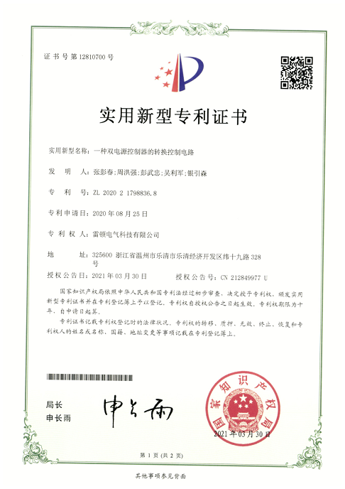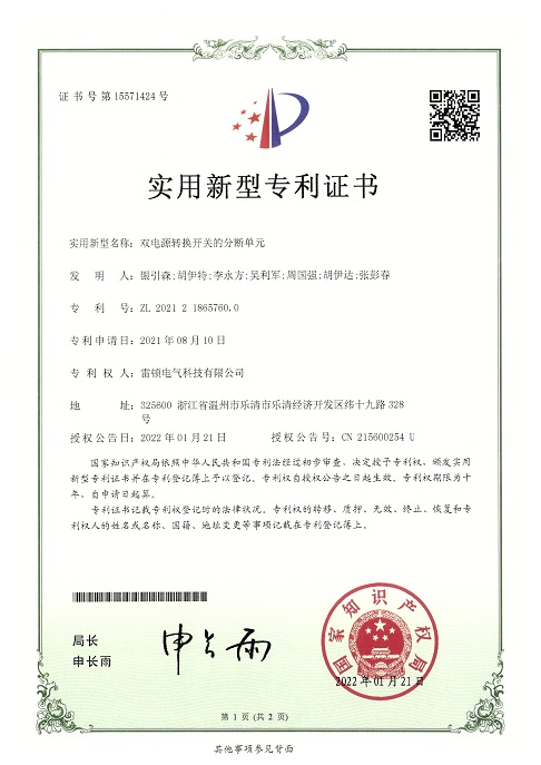 274[專利證書]雙電源轉(zhuǎn)換開關(guān)的分?jǐn)鄦卧▽?shí)用)