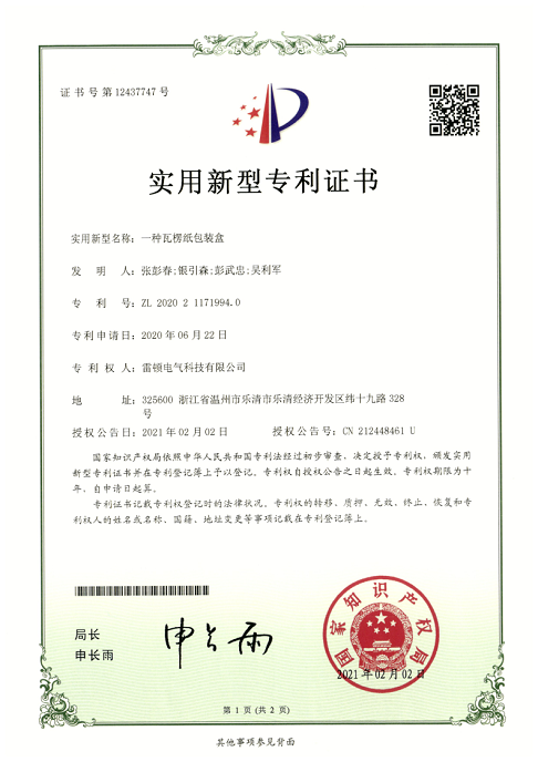 270[專利證書]一種瓦楞紙包裝盒(實(shí)用)