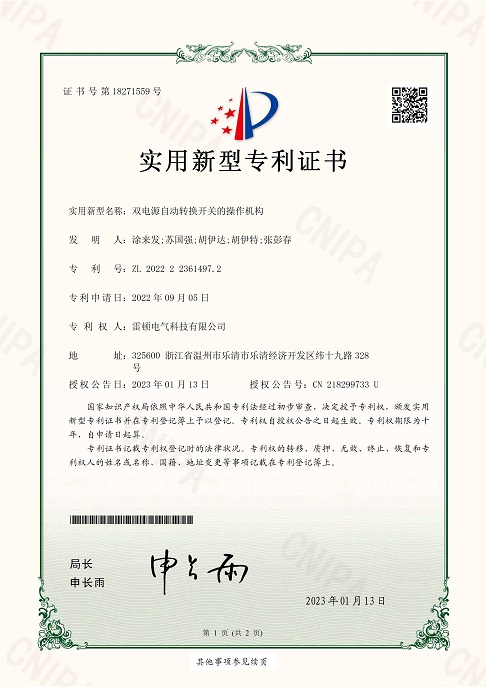 292[專利證書]雙電源自動轉(zhuǎn)換開關(guān)(實用)