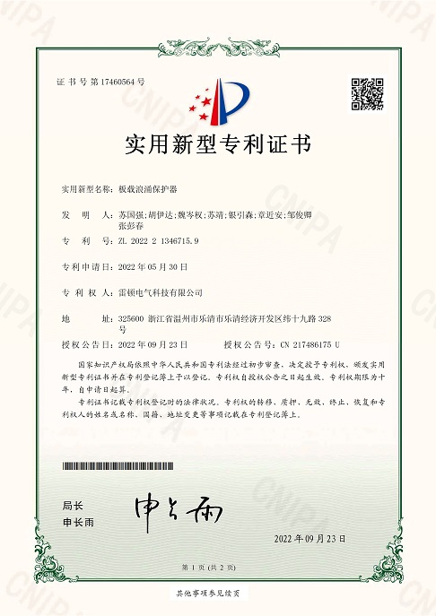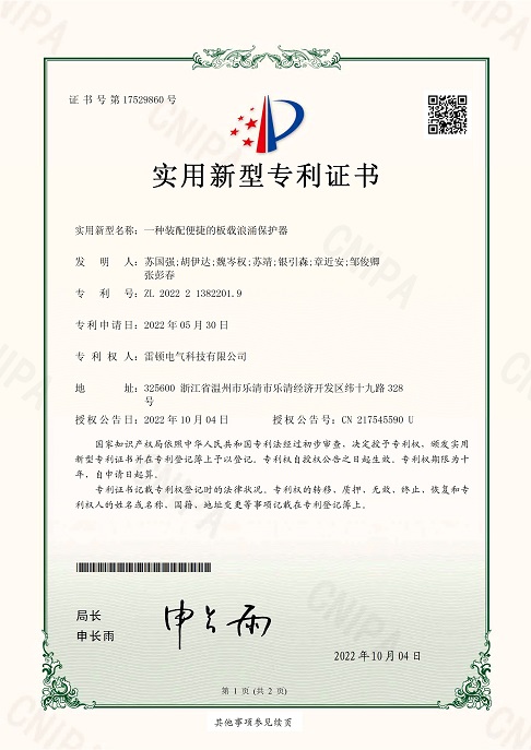 290[專利證書]一種裝配便捷的板載浪涌保護器(實用)