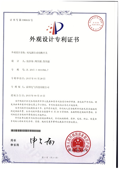 600[專利證書]雙電源自動切換開關(guān)(外觀)
