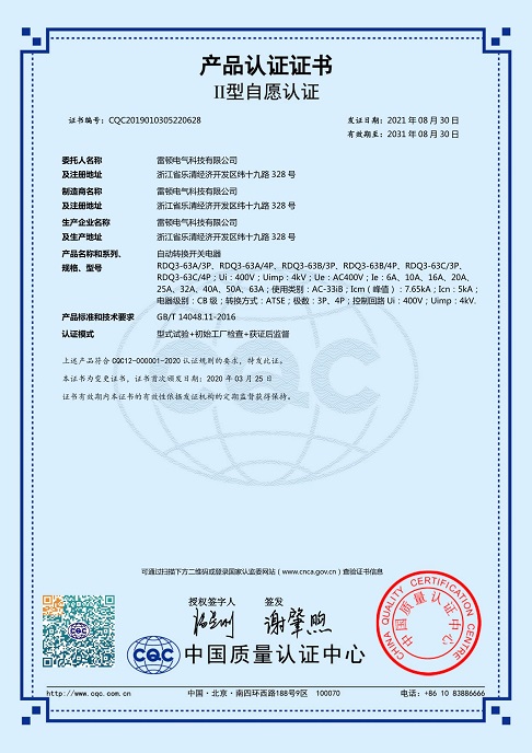 CB級自動轉(zhuǎn)換開關(guān)電器