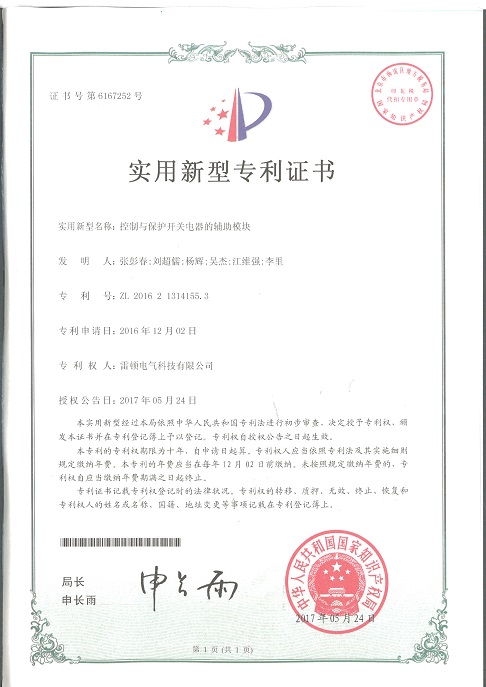 [專利證書]控制與保護開關(guān)電器的輔助模塊(實用)