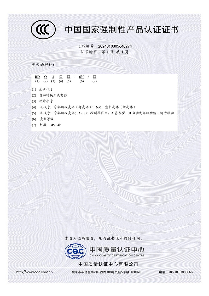 RDQ3-630/□、RDQ3NM□-630/□自動(dòng)轉(zhuǎn)換開(kāi)關(guān)電器3C證書(shū)-2【CCC】