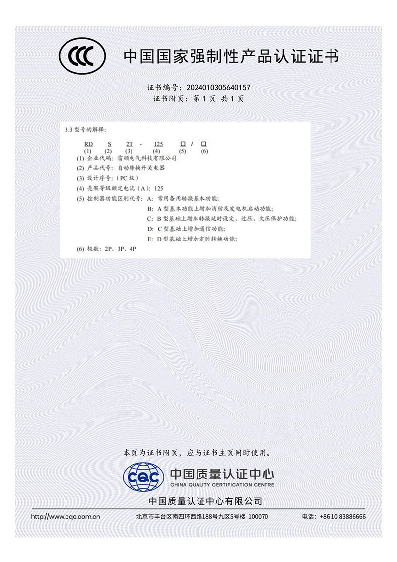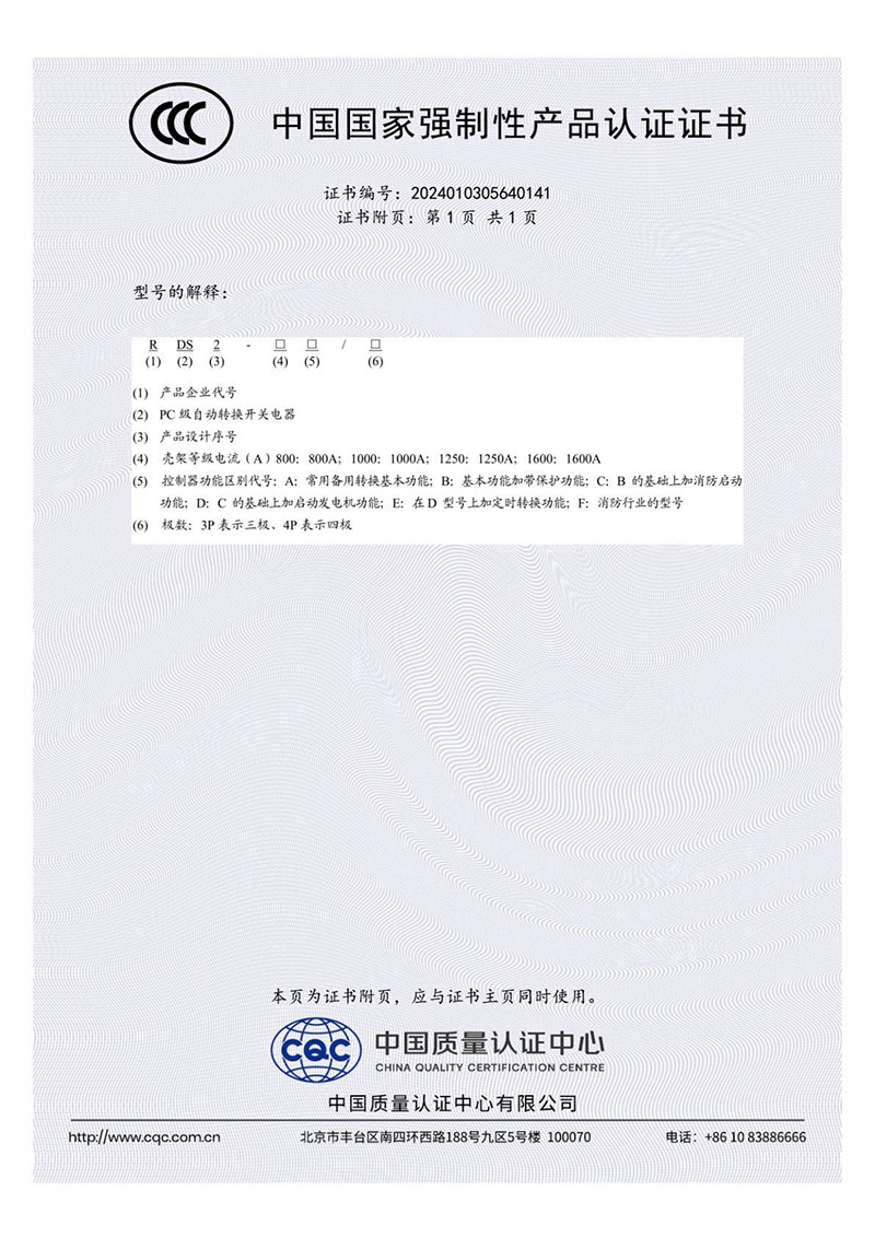 RDS2T-125□/□自動轉(zhuǎn)換開關(guān)電器3C證書-2【CCC】