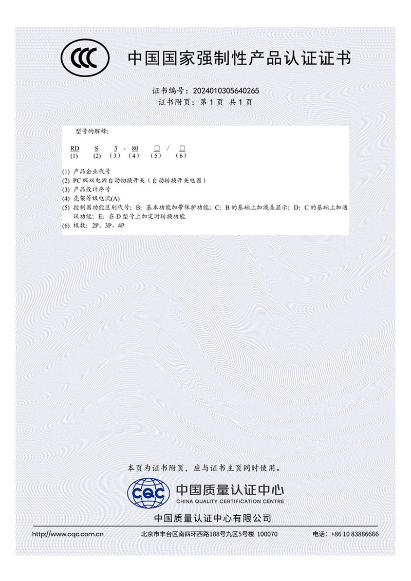 RDS3-80□/□自動(dòng)轉(zhuǎn)換開(kāi)關(guān)電器3C證書-2【CCC】
