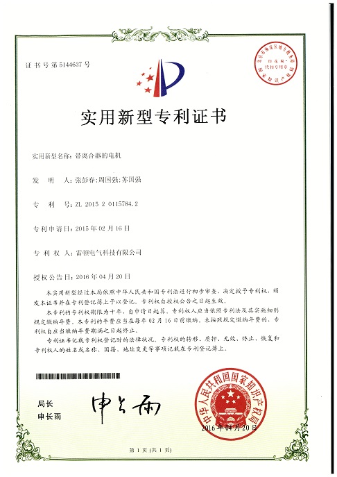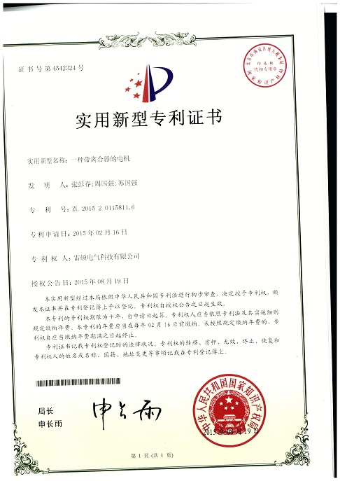 208[專(zhuān)利證書(shū)]一種帶離合器的電機(jī)(實(shí)用)