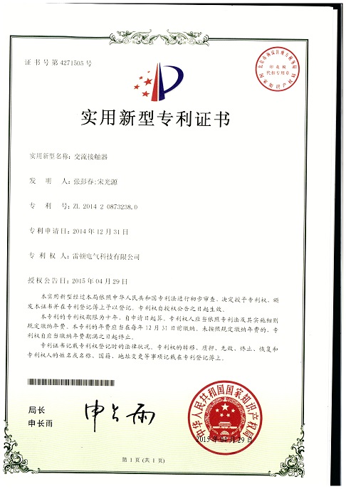 202[專(zhuān)利證書(shū)]交流接觸器(實(shí)用)