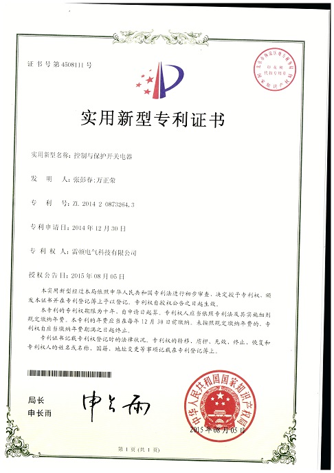 203[專(zhuān)利證書(shū)]控制與保護(hù)開(kāi)關(guān)電器(實(shí)用)