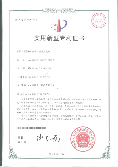 246[專利證書]雙電源自動(dòng)轉(zhuǎn)換開關(guān)(實(shí)用)