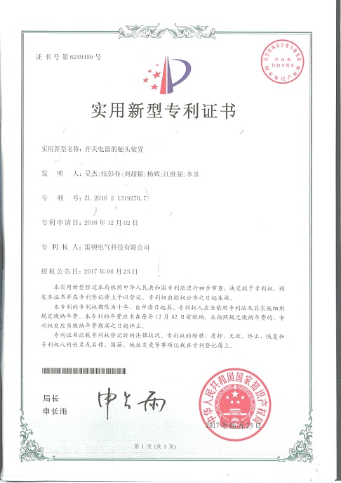 244[專利證書]開關(guān)電器的觸頭裝置(實(shí)用)