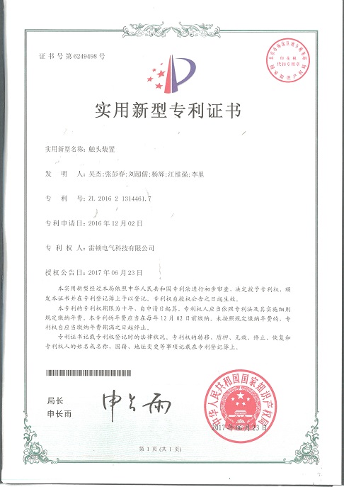 237[專利證書]一種觸頭裝置(實(shí)用)