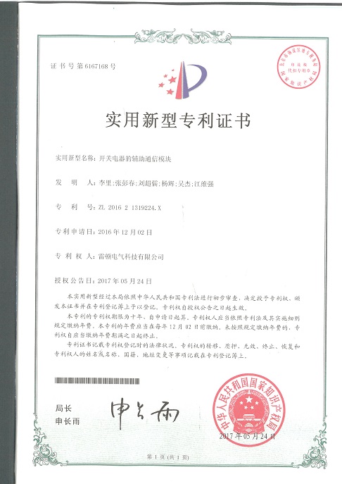 242[專利證書]開關(guān)電器的輔助通信模塊(實(shí)用)