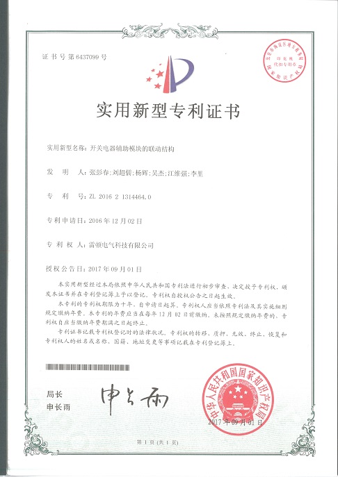240[專利證書]開關(guān)電器輔助模塊的聯(lián)動(dòng)結(jié)構(gòu)(實(shí)用)