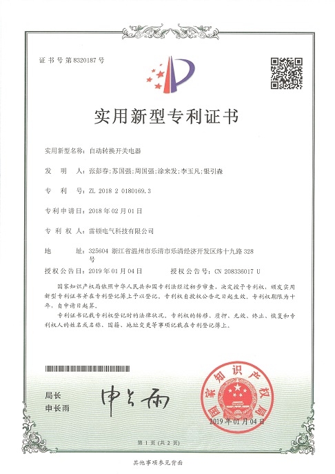 253[專利證書]自動(dòng)轉(zhuǎn)換開關(guān)電器(實(shí)用)