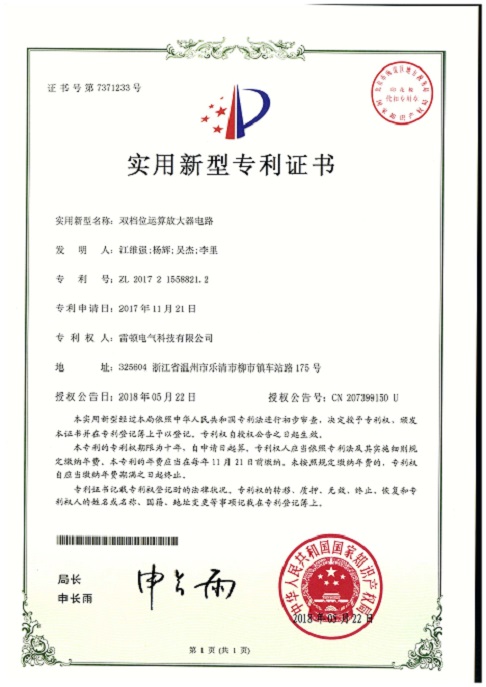 252[專利證書]雙檔位運(yùn)算放大器電路(實(shí)用)