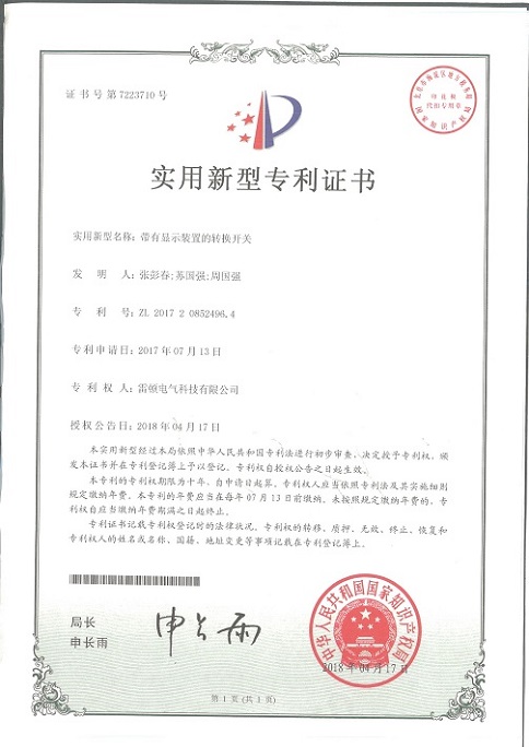 248[專利證書]帶有顯示裝置的轉(zhuǎn)換開關(guān)(實(shí)用)