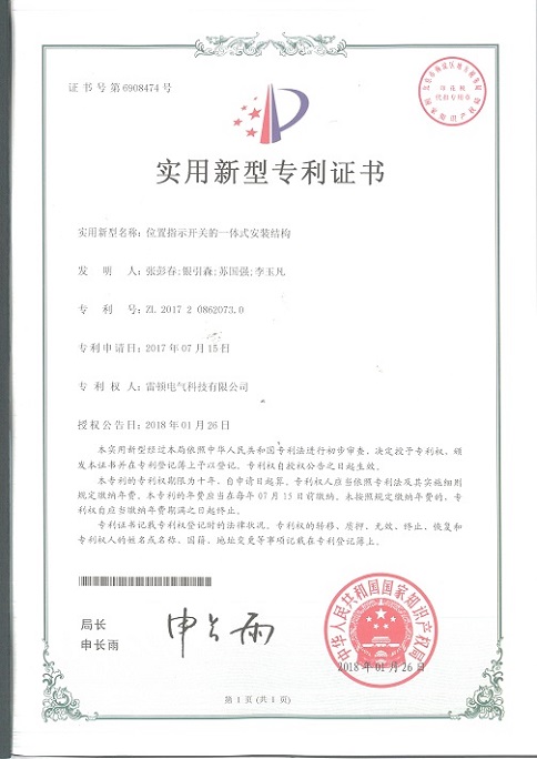 249[專利證書]位置指示開關(guān)的一體式安裝結(jié)構(gòu)(實(shí)用)