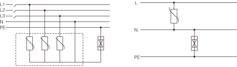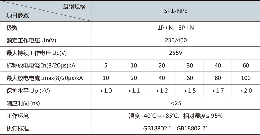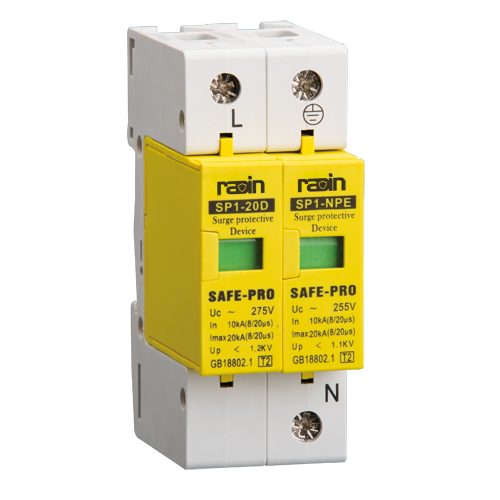 SP1-NPE零地保護模塊(簡稱NPE)適用于交流50/60Hz, 額定電壓至400V的TT、TN-S等供電系統(tǒng),用于中性線(N)與地線(PE)之間,對間接雷電和直接雷電或其它瞬間過電引起的電涌進行保護。并與SP1-C、SP1-D系列電涌保護器可組合成以下方案:1P+NPE、3P+NPE等SPD組合,以改善抗電涌性能。
