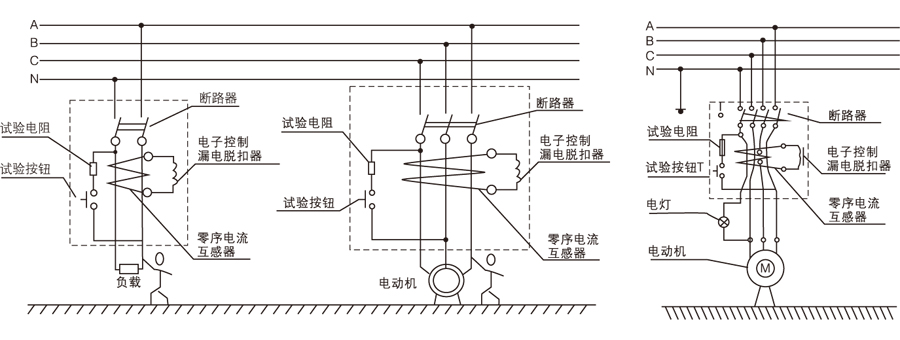 ● 當(dāng)被保護(hù)電路中有漏電或人身觸電時(shí),只要剩余電流達(dá)到整定動(dòng)作電流值,零序互感器的二次繞組的輸出信號(hào)就觸發(fā)可控硅導(dǎo)通,并通過漏電脫扣器使漏電斷路器動(dòng)作,從而切斷電源起到漏電和觸電保護(hù)作用。