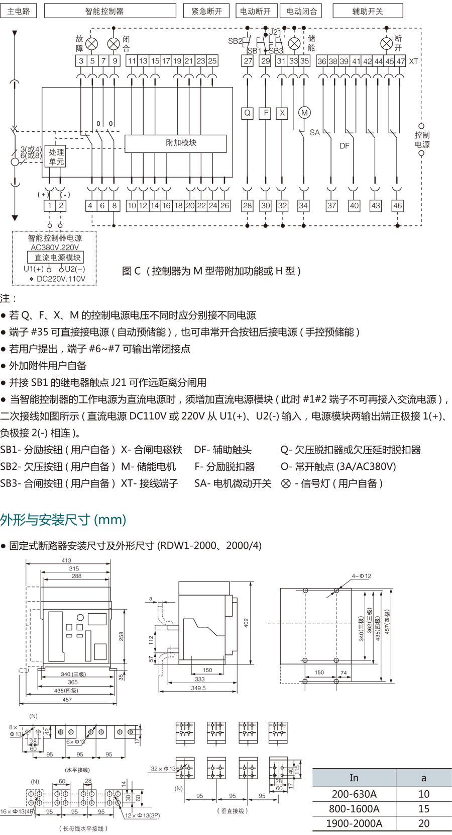 SB2- 欠壓按鈕( 用戶(hù)自備) M- 儲(chǔ)能電機(jī) F- 分勵(lì)脫扣器 O- 常開(kāi)觸點(diǎn)(3A/AC380V)