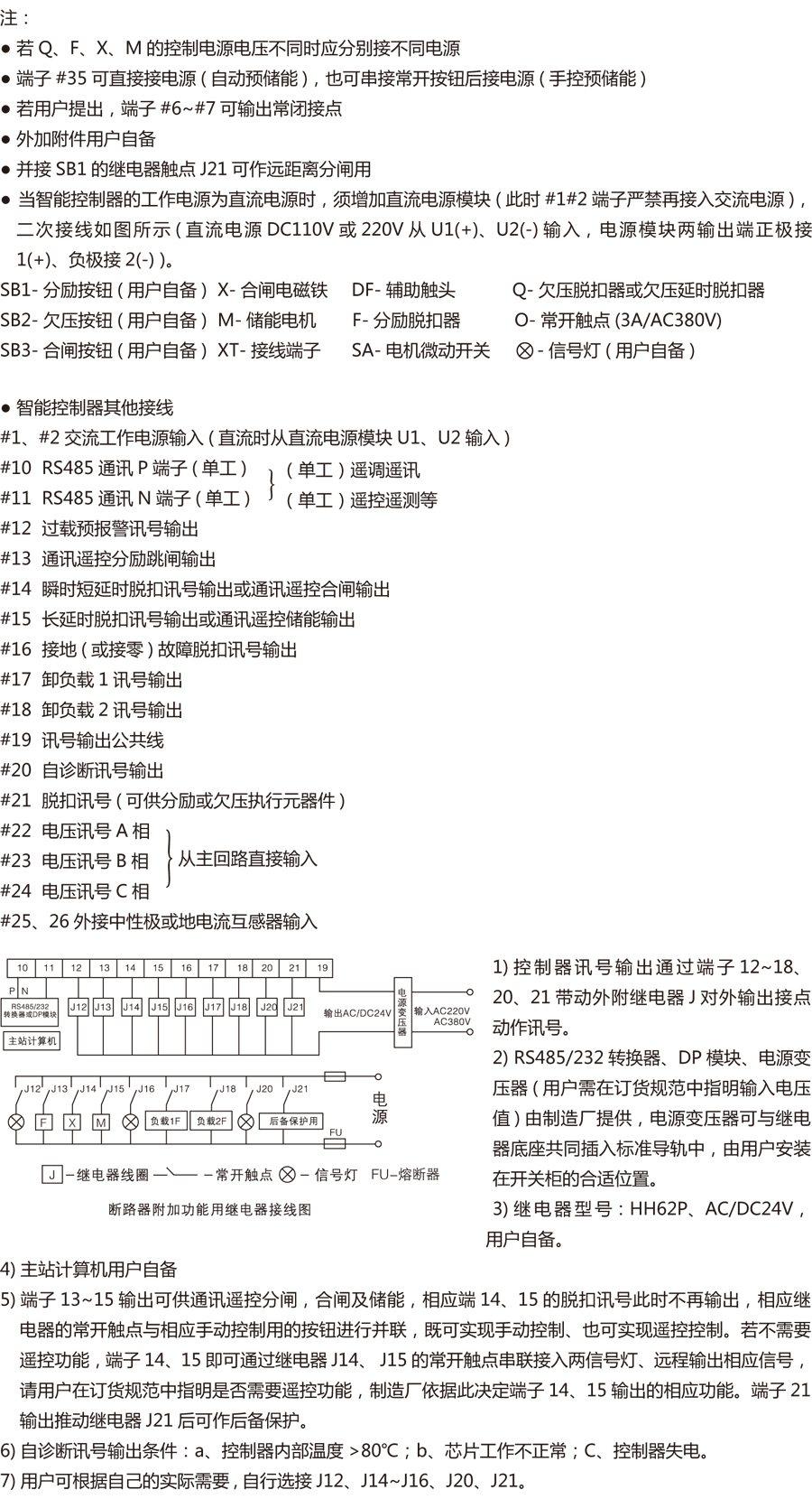 ● 若F、X、M 的控制電源電壓不同時(shí)應(yīng)分別接不同電源端子#35 可直接接電源( 自動(dòng)預(yù)儲(chǔ)能),也可串接常開(kāi)按鈕后接電源( 手控預(yù)儲(chǔ)能)